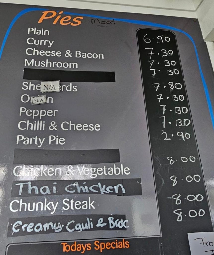 Open 6 days a week this is a cracking little joint and the cabinets are filled with all the favourites, but as always my focus was on the 🥧’s, so we decided to get started.
