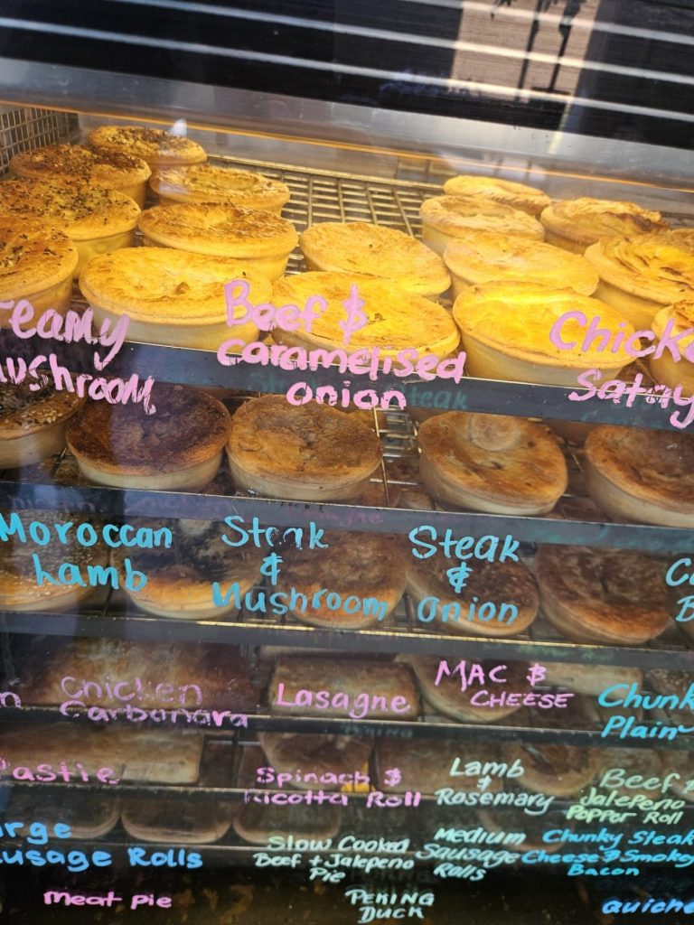 Operating seven days a week and employing a team of 15, this bakery embodies old traditional values. The extensive range of products available is truly impressive, and the establishment’s old-school service standards are unparalleled. From the moment you enter, Gayle’s team extends a warm and welcoming atmosphere; you may even be treated to Gayle performing one of her favourite tunes. After belting out a few tunes, it was time to get some 🥧’s out of the warmer and have some fun.