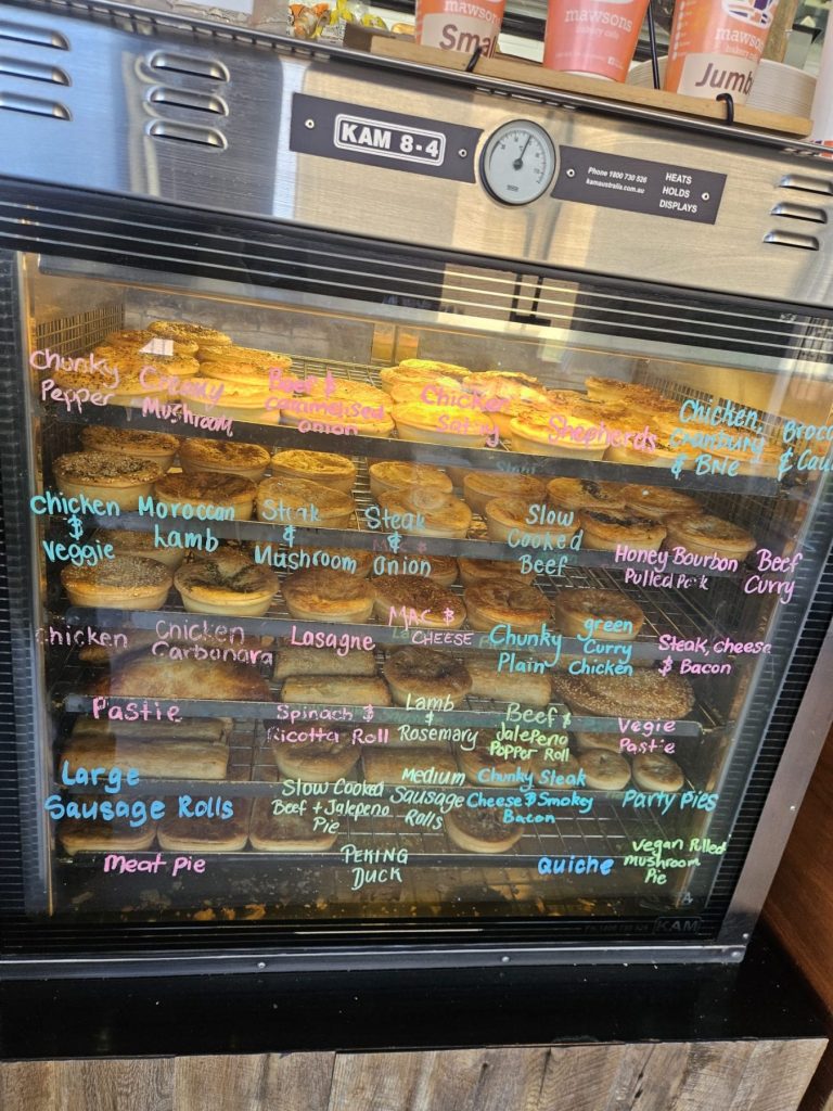 #travellingfats #mawsonsbakerycafe #pies