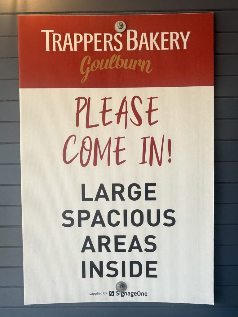 A few weeks ago I had to race up to the NSW town of Goulburn to watch junior footy trials. I thought while I was there, I would pop into the iconic Trappers Bakery Goulburn to do a review. Trappers is located just off the Hume Highway exit in Sowerby Street near the “BIG RAM” .